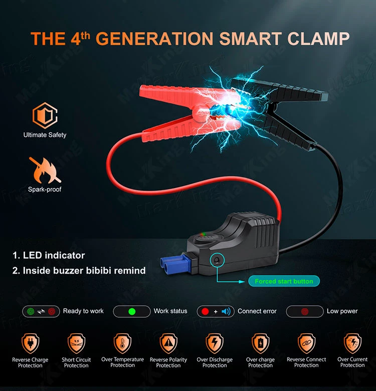? High Jump-Starting Capability – Delivers 1500A starting current and 2500A peak current for gasoline and diesel vehicles.